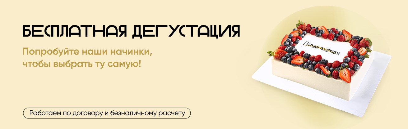 • Бесплатная дегустация. Вы можете попробовать и выбрать начинки в нашей кондитерской или с доставкой.