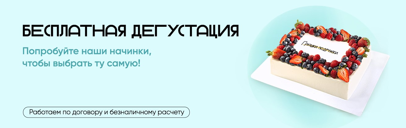 Бесплатная дегустация! Вы можете попробовать и выбрать начинки в нашей кондитерской или с доставкой на дом.
