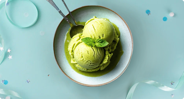 Такой десерт является настоящим кулинарным шедевром, который удивит вас своим вкусом и пользой. Сливочная текстура авокадо прекрасно подойдет, чтобы приготовить мороженое. Оно придаст блюду нежнейшую консистенцию, деликатный и немножко сладковатый вкус с ореховыми нотками. Такое мороженое очень нежное, готовится легко и просто! Мононенасыщенные жиры авокадо — прекрасная замена дешевому и неполезному пальмовому маслу, которое часто кладут в мороженое.