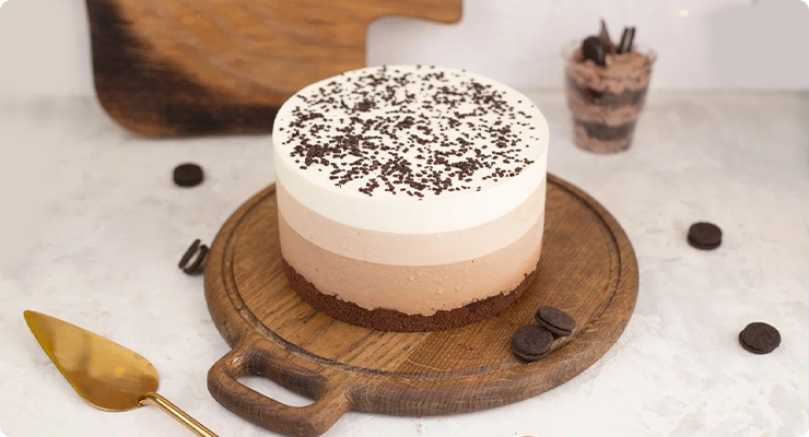 - С бисквитом «Шоколад на кипятке» и сливочно-шоколадным кремом.