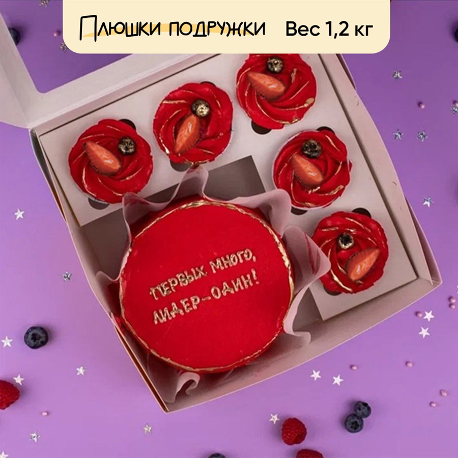 Бенто-торт и 5 капкейков в одной коробке в подарок вашим близким. В одном наборе вы можете выбрать вкус торта и 1 вкус капкейков. И внести следующие изменения в дизайн десертов - цвет, текст надписи. Для этого выберите нужные опции и напишите пожелания в комментариях при оформлении заказа.