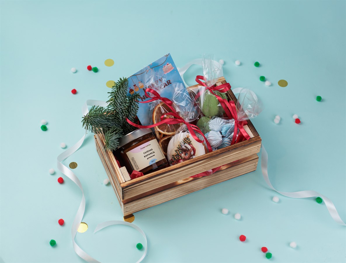 Новогодний подарочный набор десертов с открыткой. В набор входит: